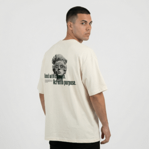 Mucho más que una camiseta oversize marfil: es la manifestación de tu carácter. Diseñada para el líder que forja su propio camino, con la convicción como única guía. Siente la libertad de su silueta y la resonancia de un mensaje que te define.