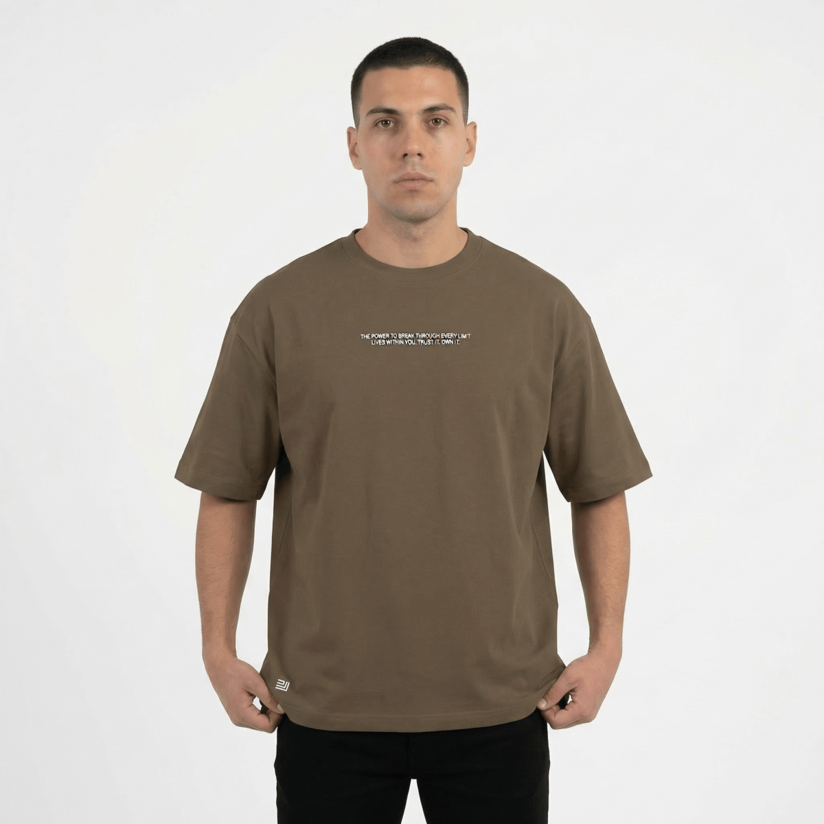 Desde el asfalto hasta el santuario de tu entrenamiento, esta pieza se adapta a ti, convirtiéndose en una extensión de tu voluntad. Es más que ropa streetwear motivacional; es el eco de tus victorias. Su estética minimalista y su mensaje sutil la convierten en la pieza central de un estilo urbano consciente y con propósito. La amplitud de su corte te envuelve en una libertad de movimiento absoluta, haciendo de ella la camiseta oversize para gym que te permite concentrarte en lo único que importa: superar tu propia marca. El tono Mocca, profundo y sereno, aporta una elegancia terrenal que complementa la narrativa de tus logros.