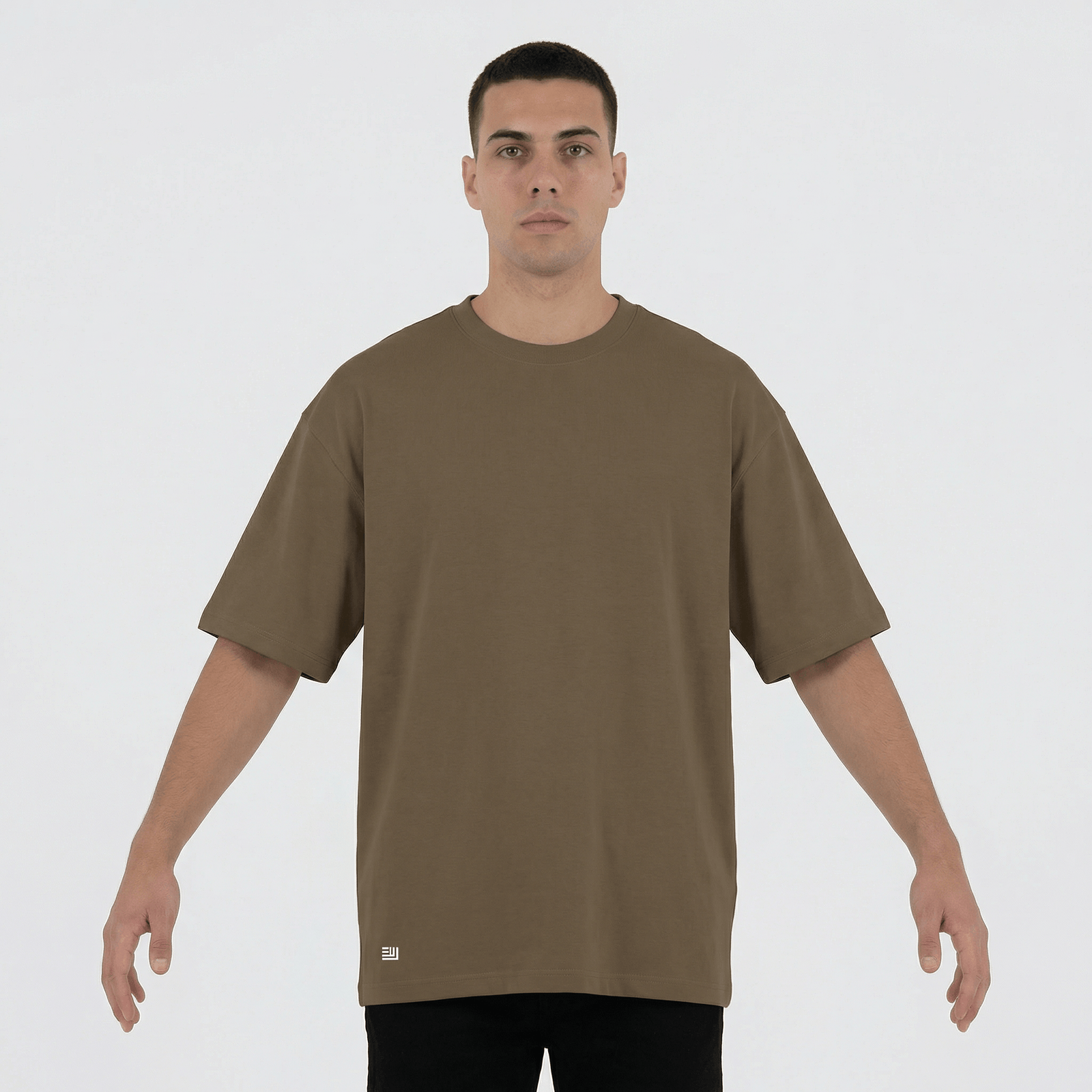 Más que una camiseta ancha streetwear, es un manifiesto. El tono Mocca, profundo y sereno, crea el lienzo sobre el cual proyectas tu confianza. Es la pieza que eliges para moverte por la ciudad con la seguridad de quien conoce su camino, envolviéndote en una sensación de calma y poder.
