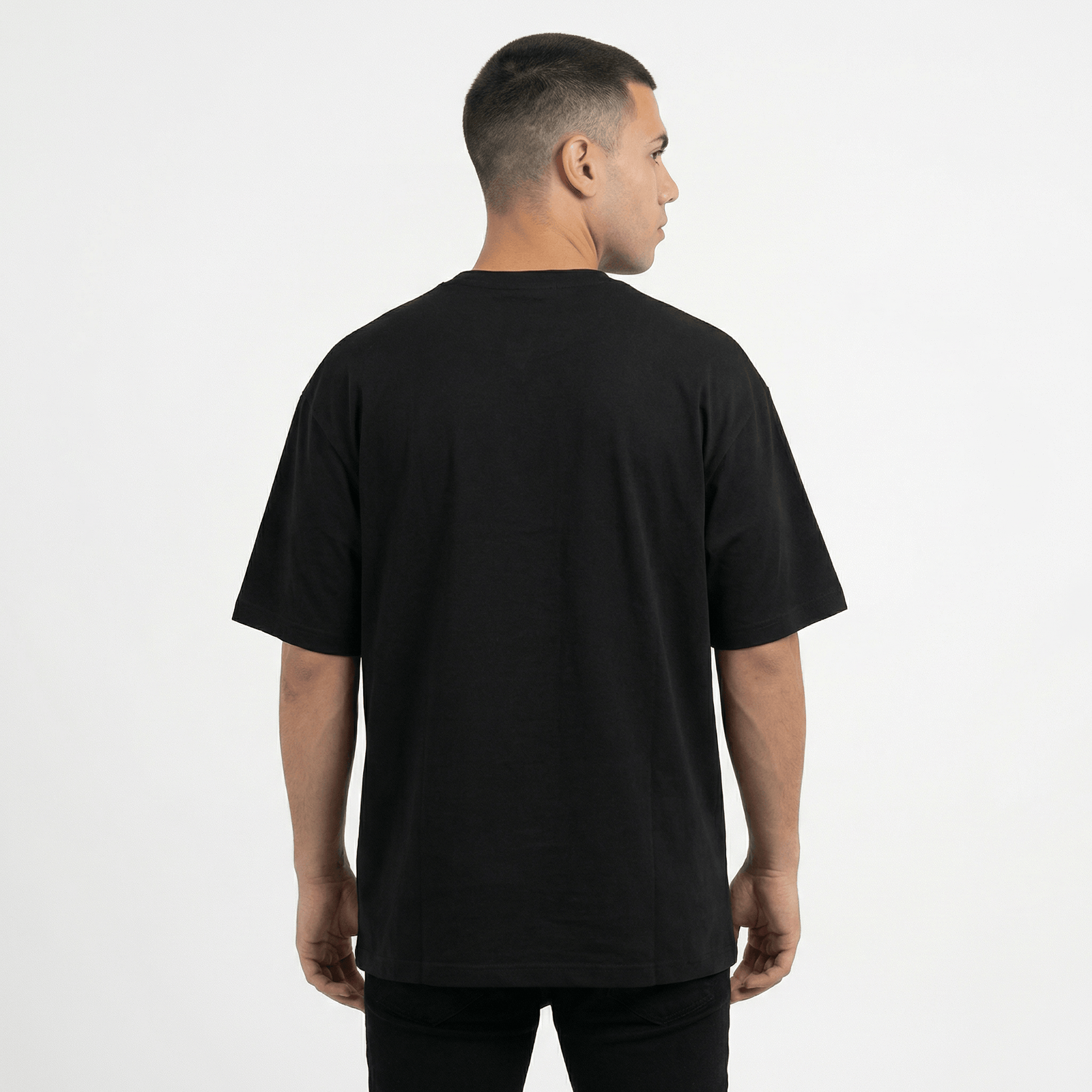 El negro es el lienzo de la intención. Esta camiseta streetwear negra te otorga la libertad de construir cada outfit camiseta oversize como una extensión de tu identidad. Combínala, adáptala, hazla tuya. El resultado es una elegancia innata, un estilo que irradia carácter sin pronunciar una sola palabra.