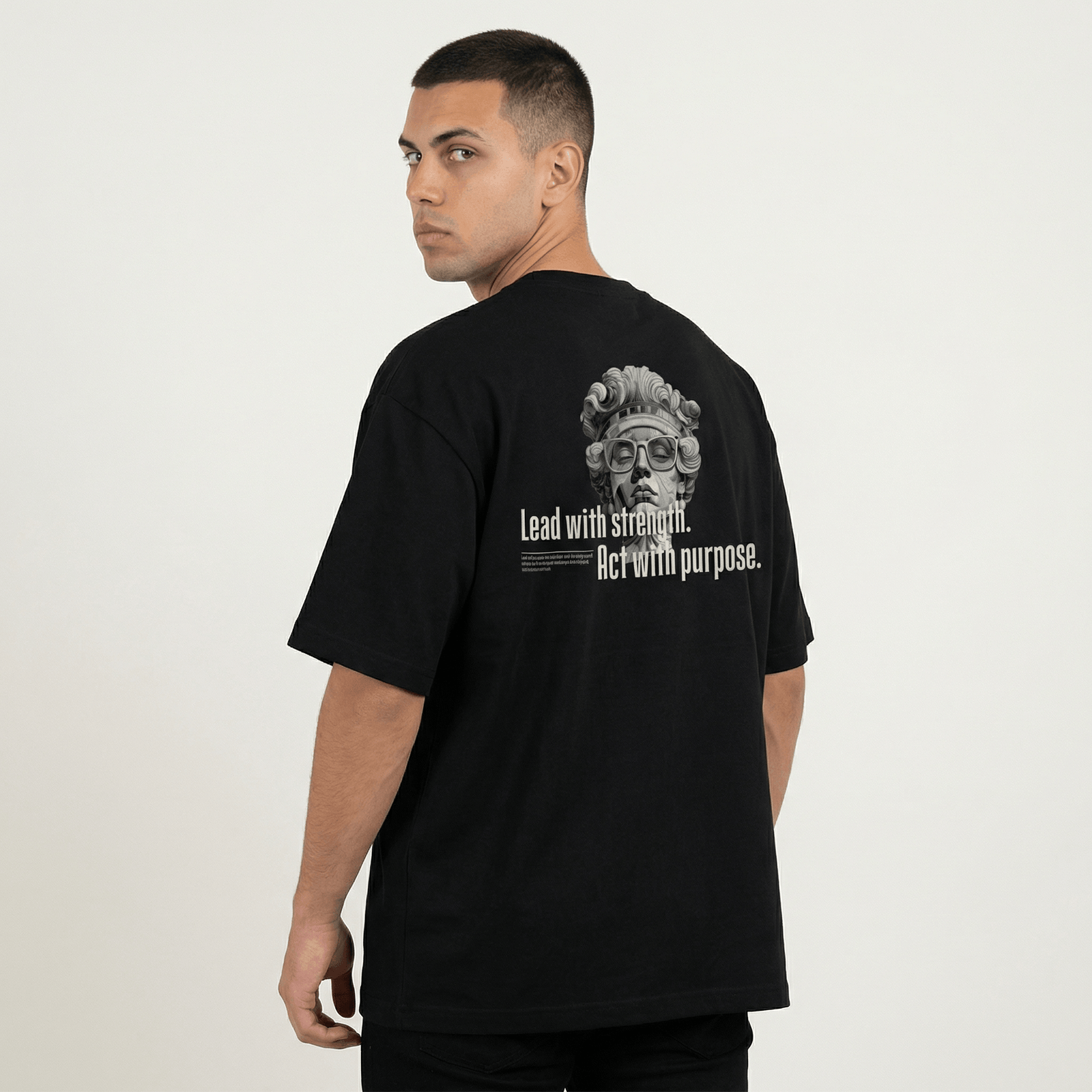 Cada espacio que habitas es un reflejo de tu presencia. Tu estilo, tu firma personal. Concebida para quienes marcan su propio camino, la camiseta oversize negra hombre ‘Lead with Strength’ es una pieza que habla de liderazgo interior, no de imposición. Es la expresión de una convicción tranquila y firme.