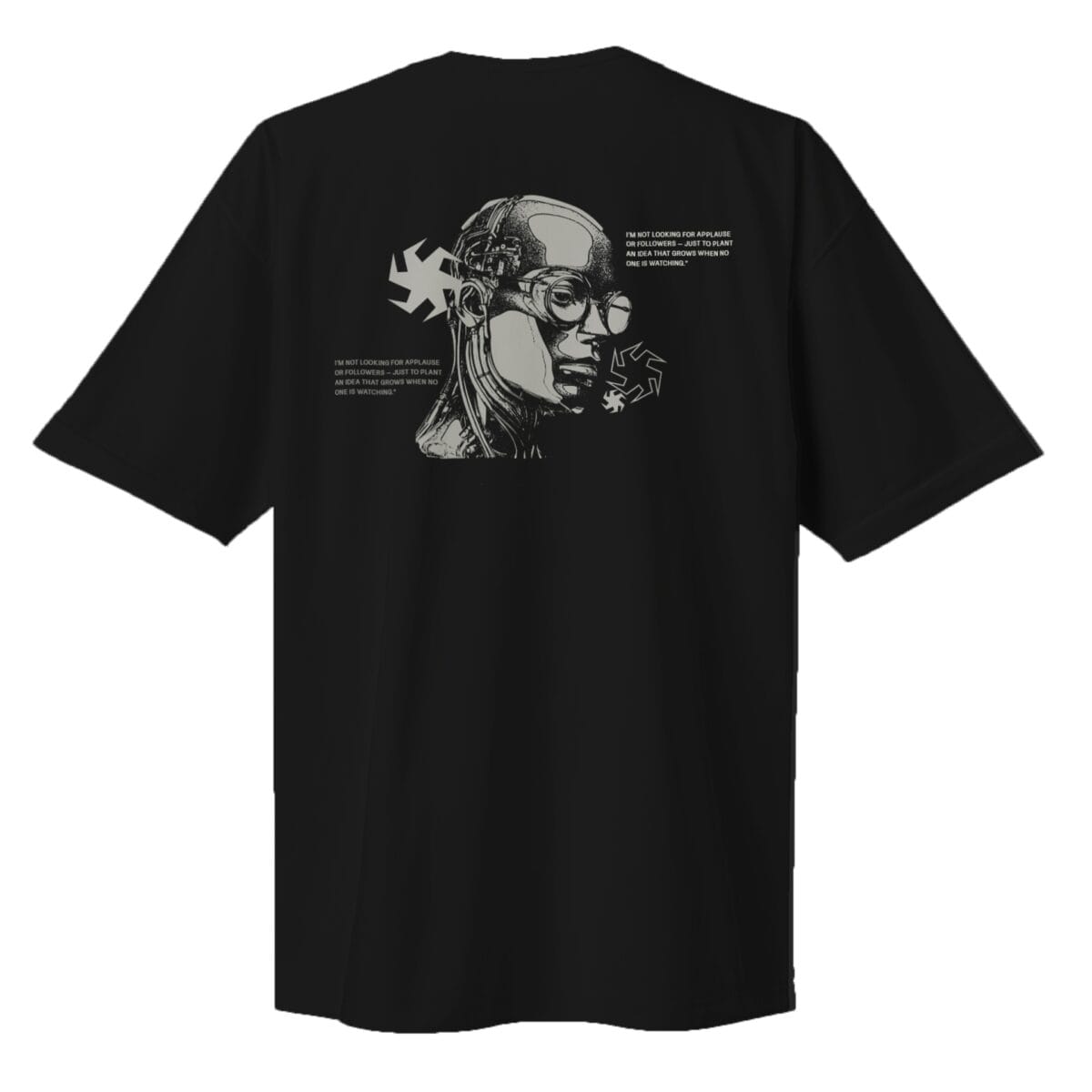 La base de tu narrativa personal. Una camiseta oversize negra con una cadencia inconfundible, diseñada para expresarte sin necesidad de palabras. Un corte que proyecta seguridad y se convierte en el lienzo esencial de tu estilo.