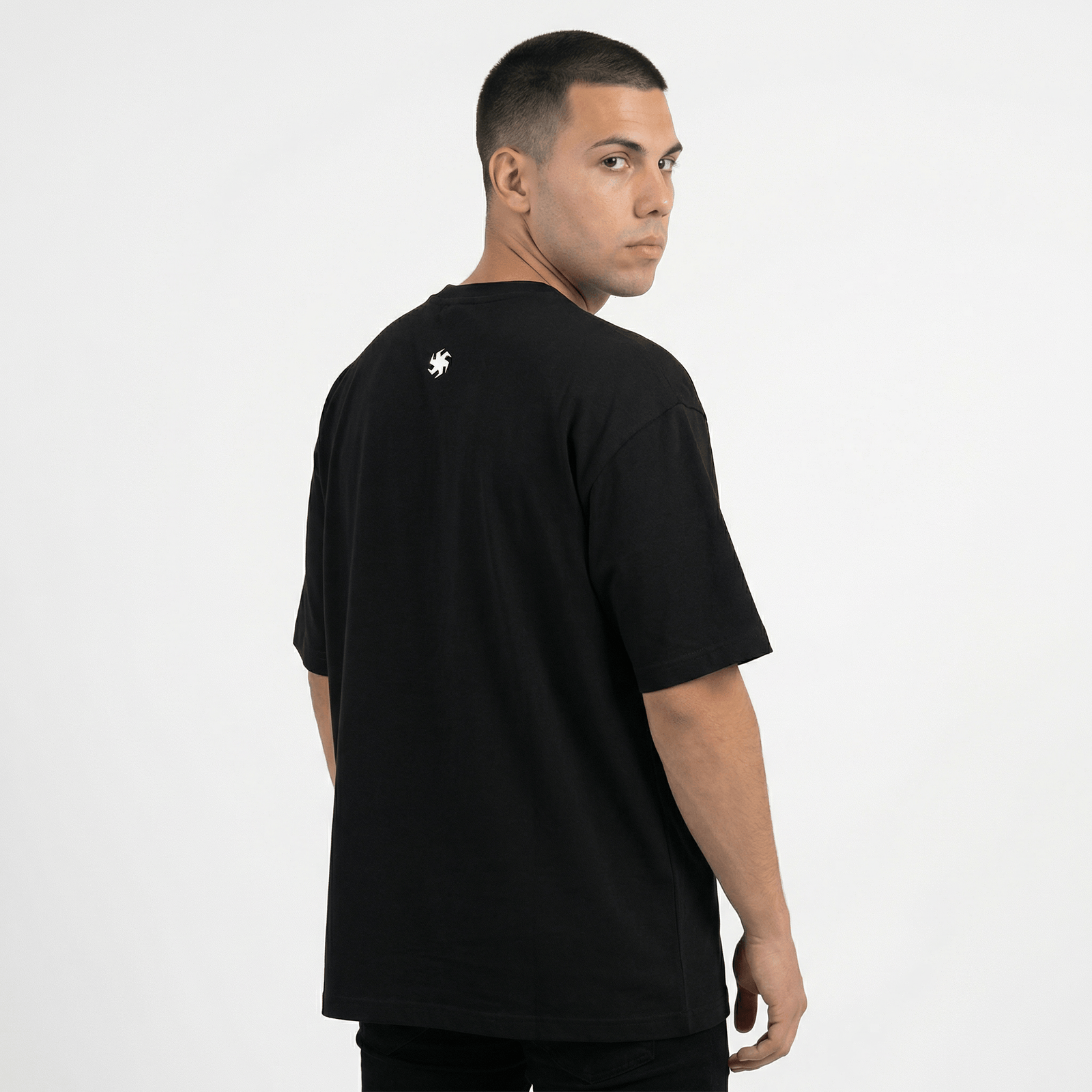 Esto es más que una prenda; es una declaración de principios. Tu armadura diaria, una pieza de ropa oversize urbana que comunica por ti. El negro profundo de esta camiseta streetwear negra no es ausencia de color, sino la suma de toda la fuerza; el código de vestimenta para quienes trazan su propio camino con una confianza serena.