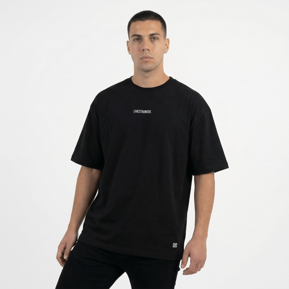 Diseñada para transitar del dinamismo urbano a la concentración del entrenamiento. Más que una simple playera oversize de hombre, es una extensión de tu piel. La amplitud de su corte ofrece una libertad de movimiento absoluta, mientras la profundidad de su negro proyecta una serena confianza. El lienzo perfecto para la narrativa de tu día a día.