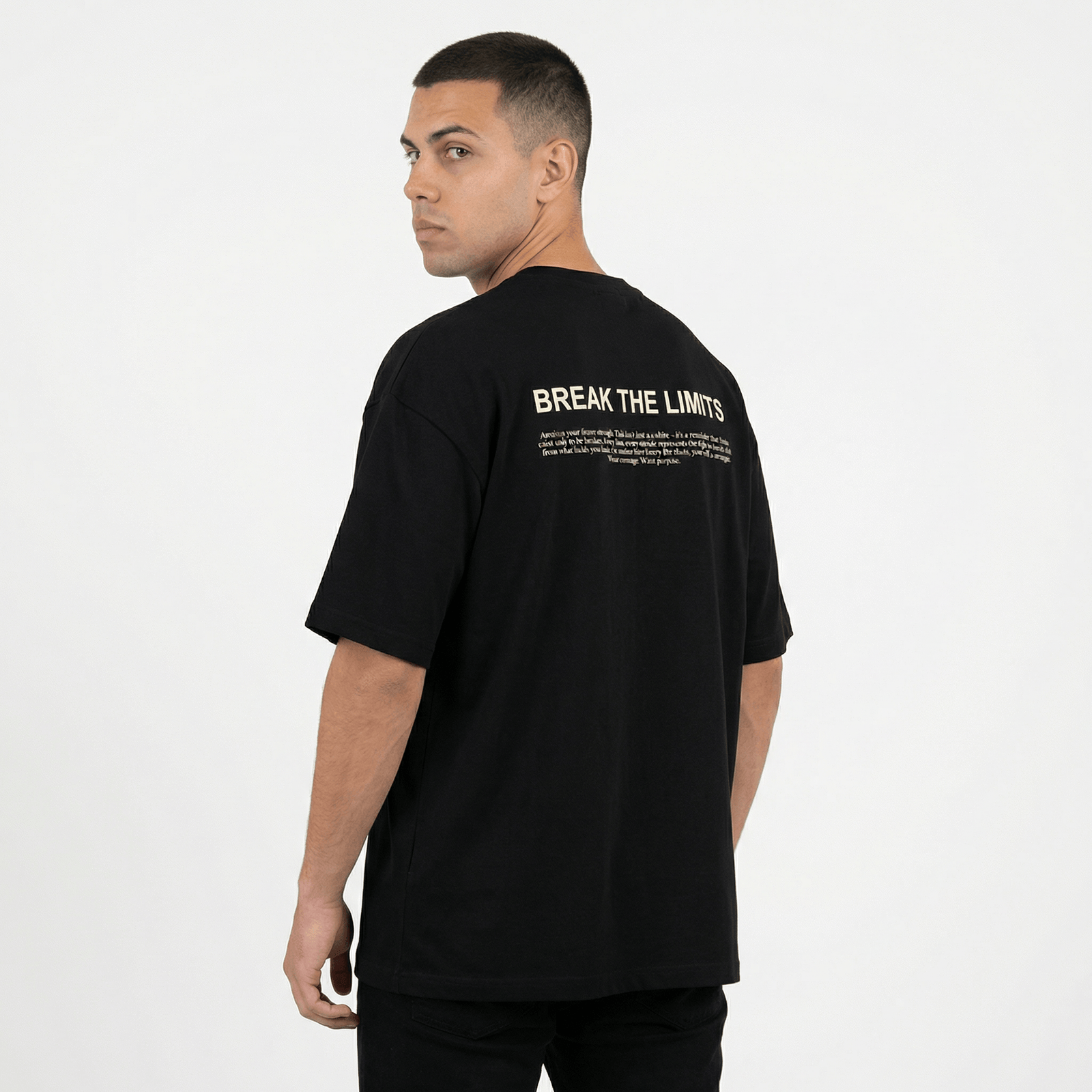 No adquieras solo una camiseta. Invierte en un símbolo de tu propia evolución. La Camiseta Oversize Break The Limits en Negro está reservada para aquellos que eligen no conformarse.