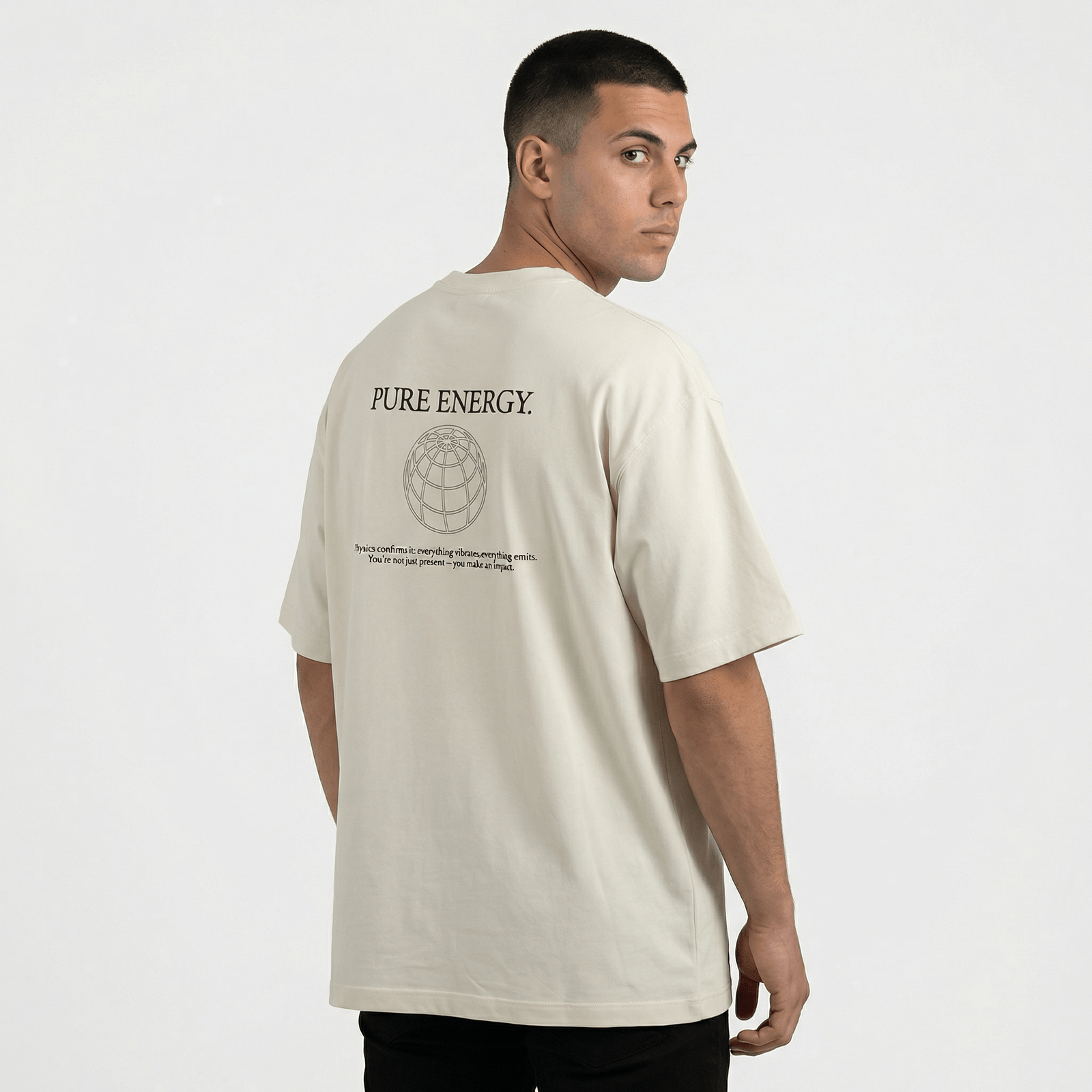 Eleva tu narrativa personal. Permite que tu estilo sea un reflejo de tu fuerza interior. La camiseta oversize hombre marfil es el punto de partida. Vive cada momento, con más intención, con más presencia. Vive más fuerte.