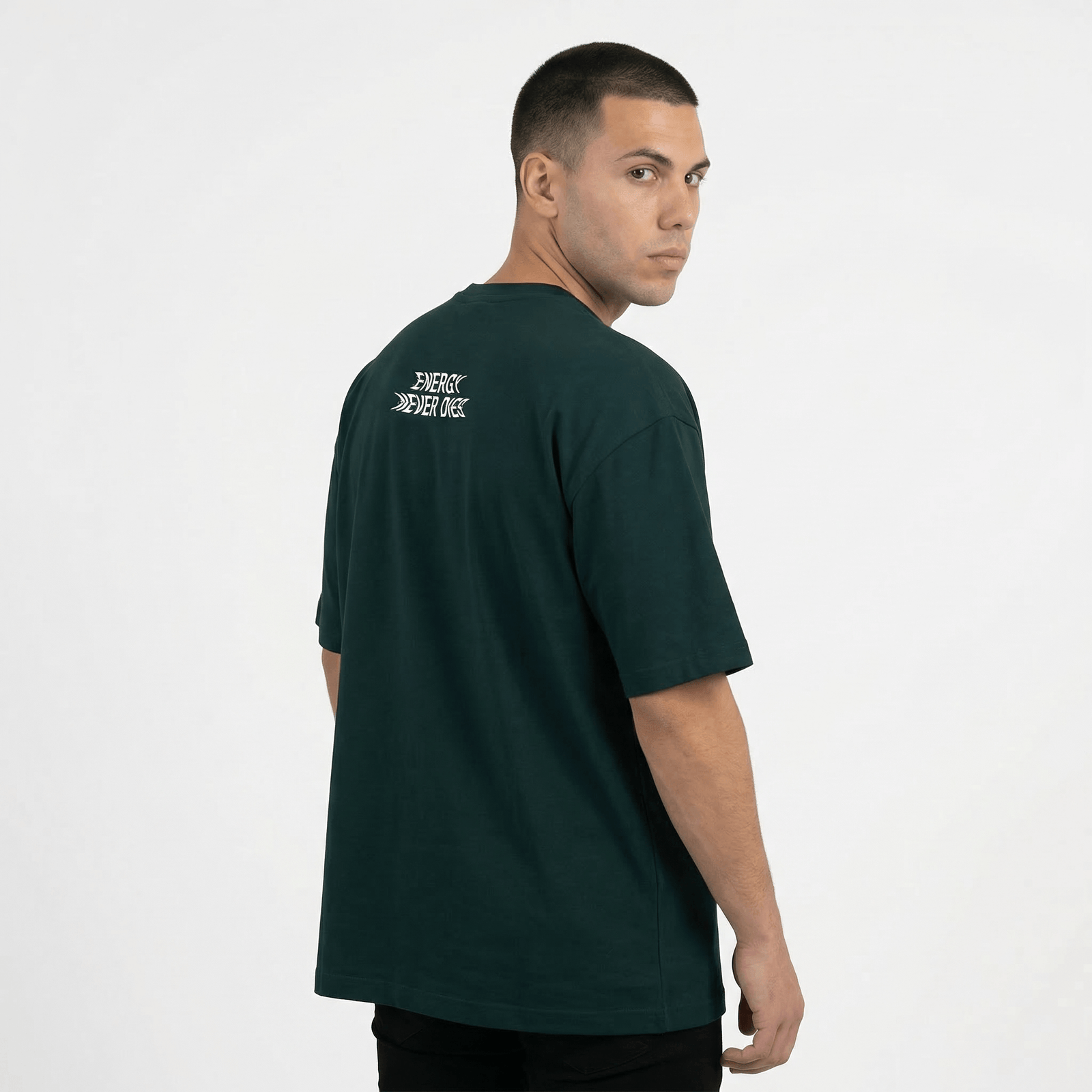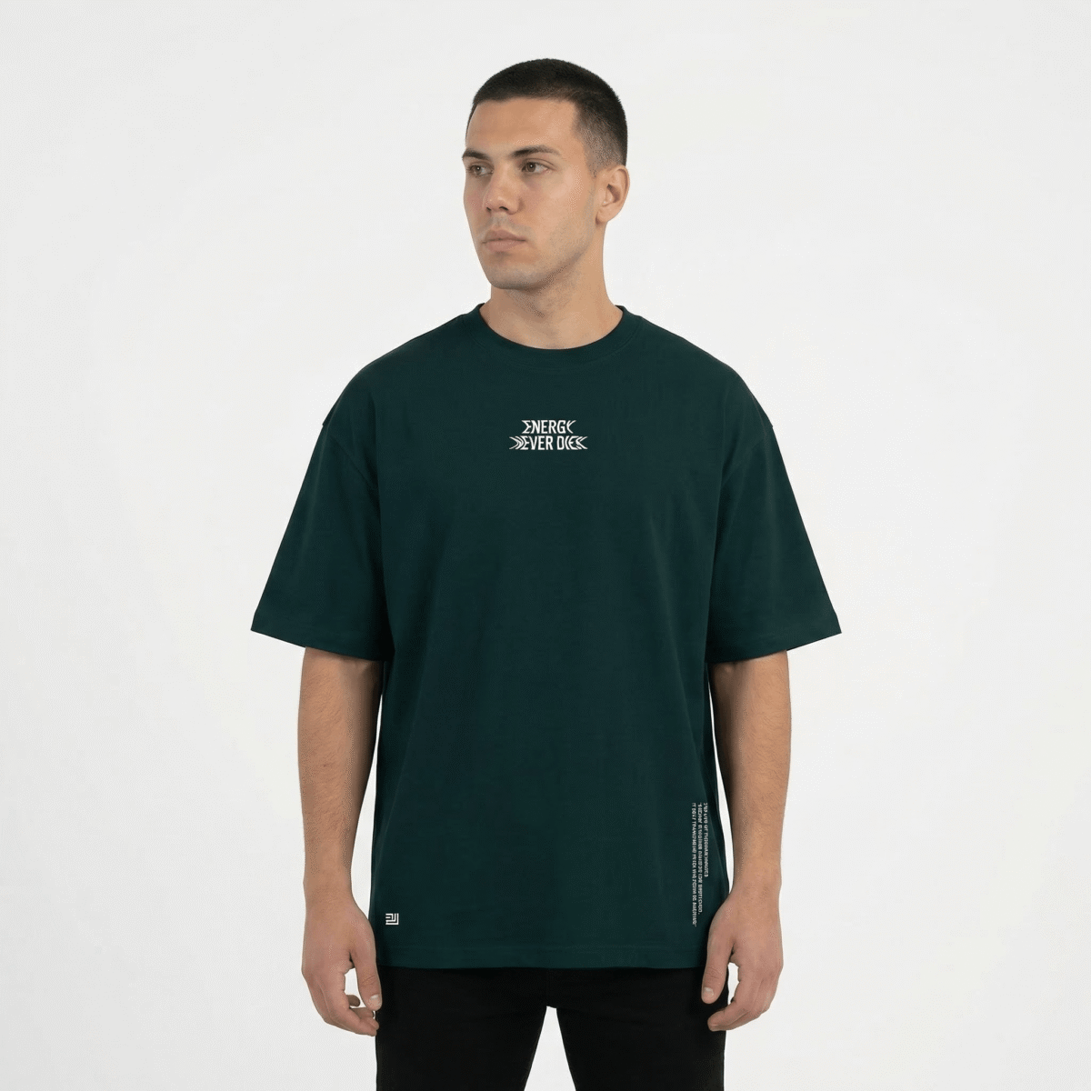 El lema ‘Energy Never Dies’ es más que una frase; es la filosofía que acompaña a quienes encuentran fuerza en el desafío. Su tono verde evoca un vigor natural, mientras la silueta amplia te otorga una libertad de movimiento absoluta, permitiéndote trazar tu propio camino con confianza y fluidez. Una playera oversize streetwear verde que se convierte en un símbolo de tu resiliencia. Es una camiseta con estampado motivacional que habla tu mismo idioma.