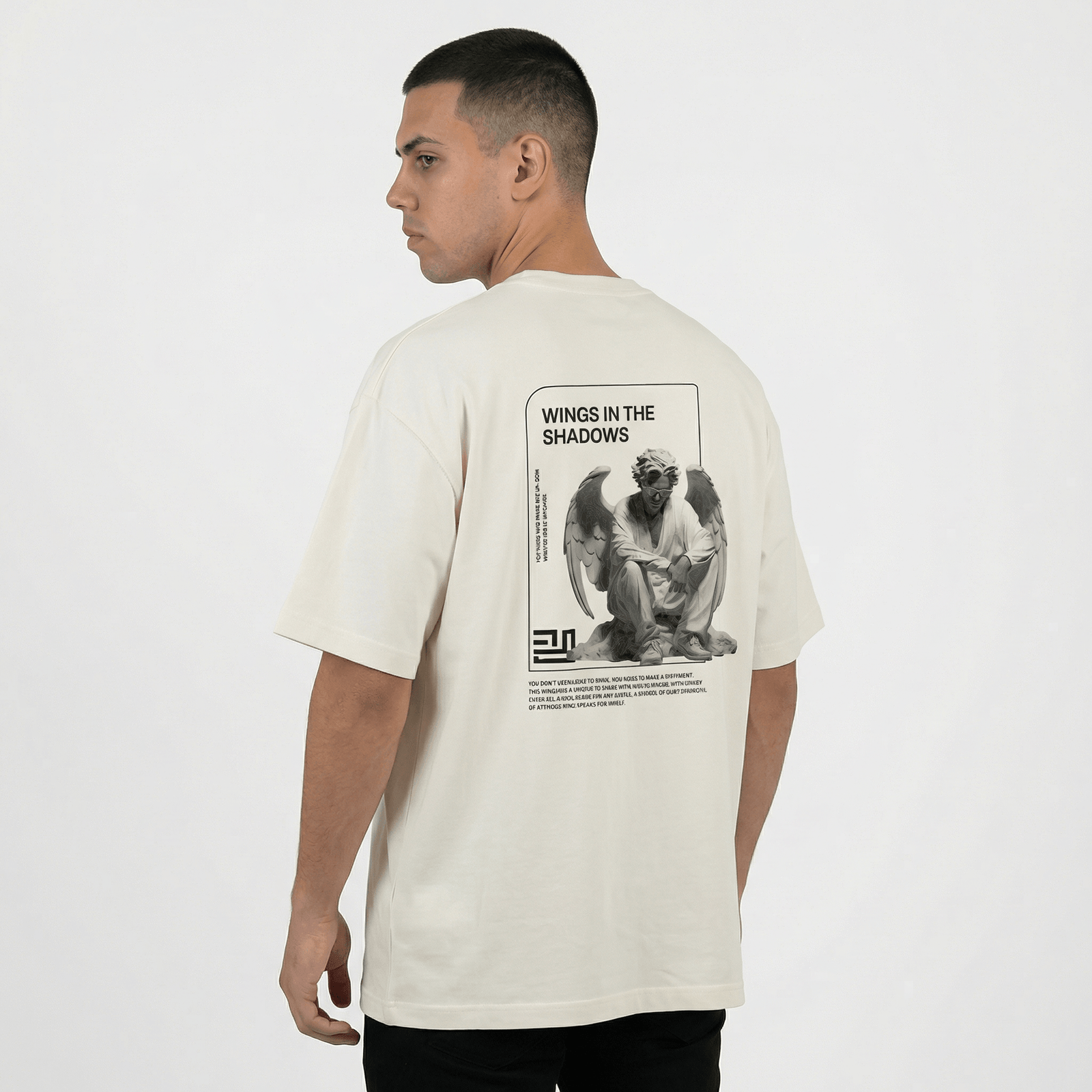 La verdadera fuerza no grita, se siente. Nace en el silencio, en las sombras donde te construyes a ti mismo. Para esos instantes, hemos creado la Camiseta Oversize Wings In The Shadows.