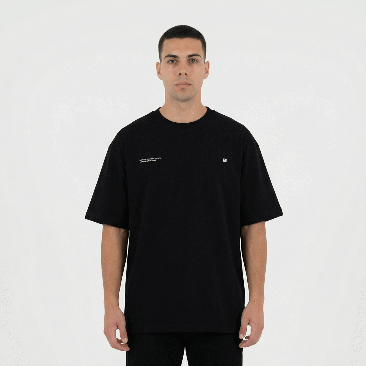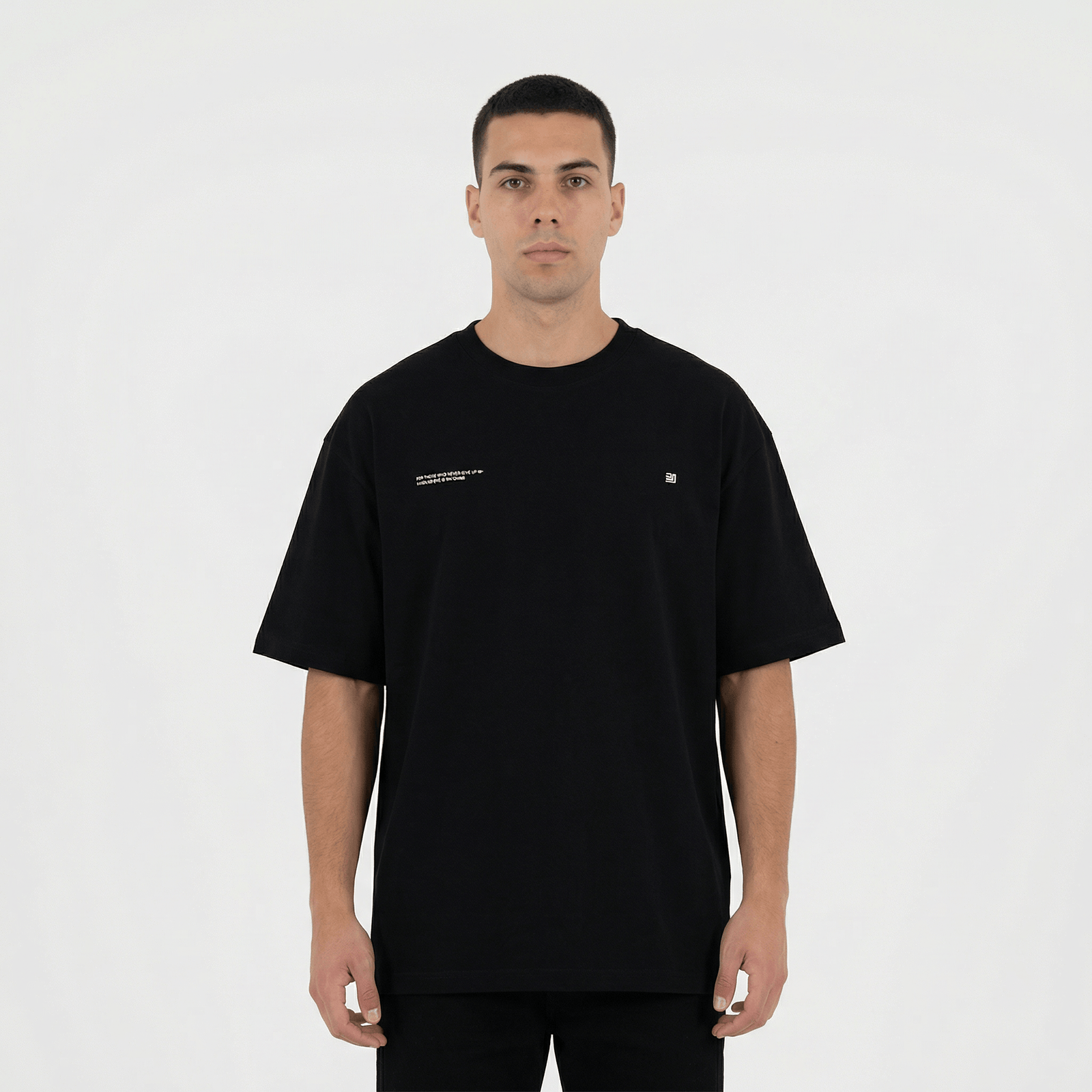 Esto es más que una camiseta oversize negra; es un manifiesto de tu identidad. Su corte holgado te envuelve en una libertad absoluta, mientras que el negro profundo actúa como un lienzo para tu propia presencia. Es la pieza clave para quien se mueve con certeza por el paisaje urbano, para quien entiende que el verdadero poder reside en la sutileza.