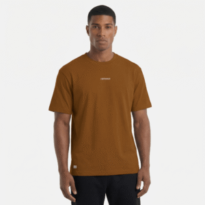 Diseñada para acompañarte, no para impresionar. La camiseta regular fit caramelo es una declaración de calma y seguridad. Su corte perfecto y su color tierra te anclan a lo real. Es la camiseta minimalista hombre para quien entiende que la verdadera fuerza reside en la sencillez; la camiseta streetwear básica elevada a su forma más pura y potente.