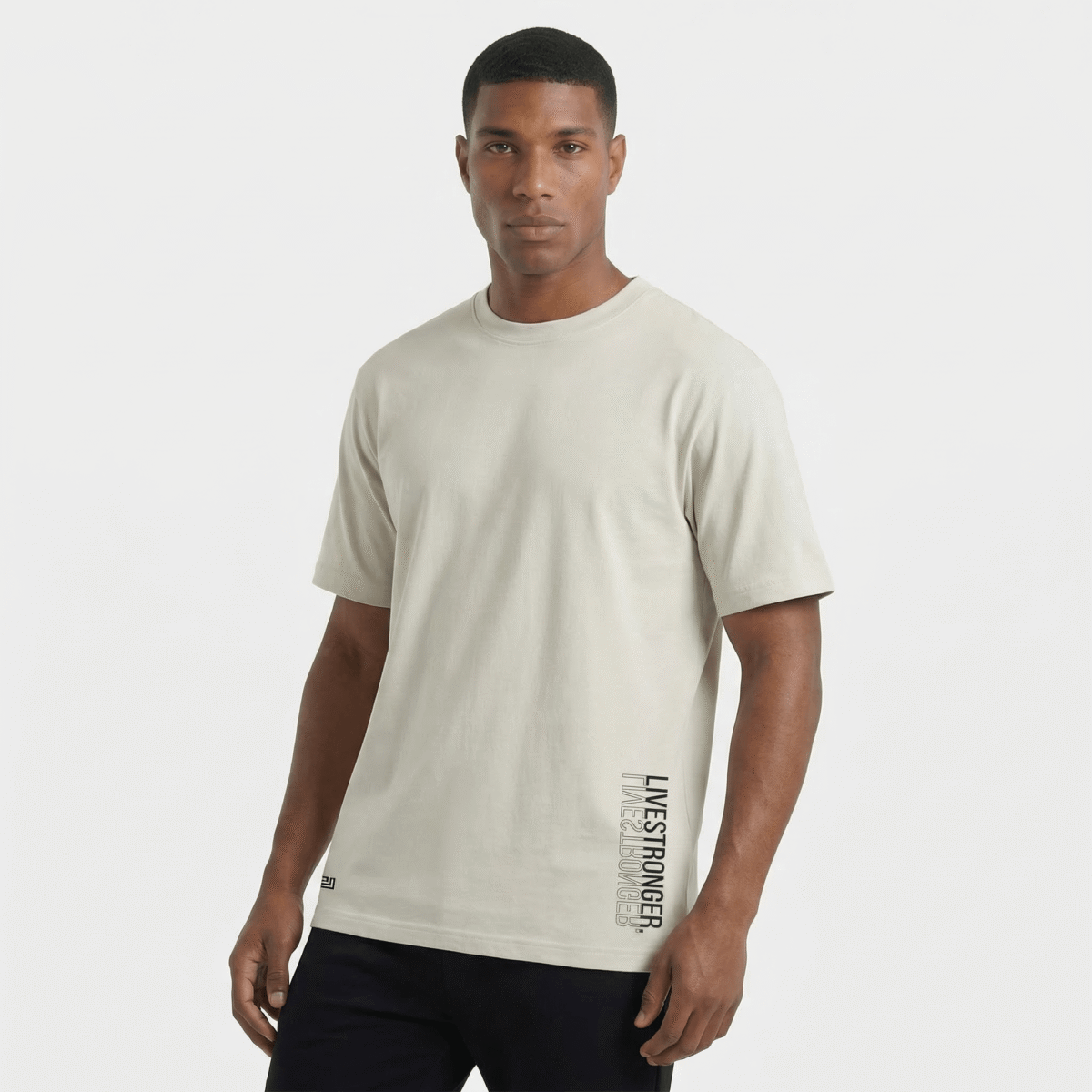 La confianza nace de los detalles. La Camiseta Regular Fit Marfil de Livestronger no es solo una prenda, es el cimiento sobre el que se construye tu presencia. La pieza que unifica tu conjunto, brindándote una seguridad silenciosa en cada paso.