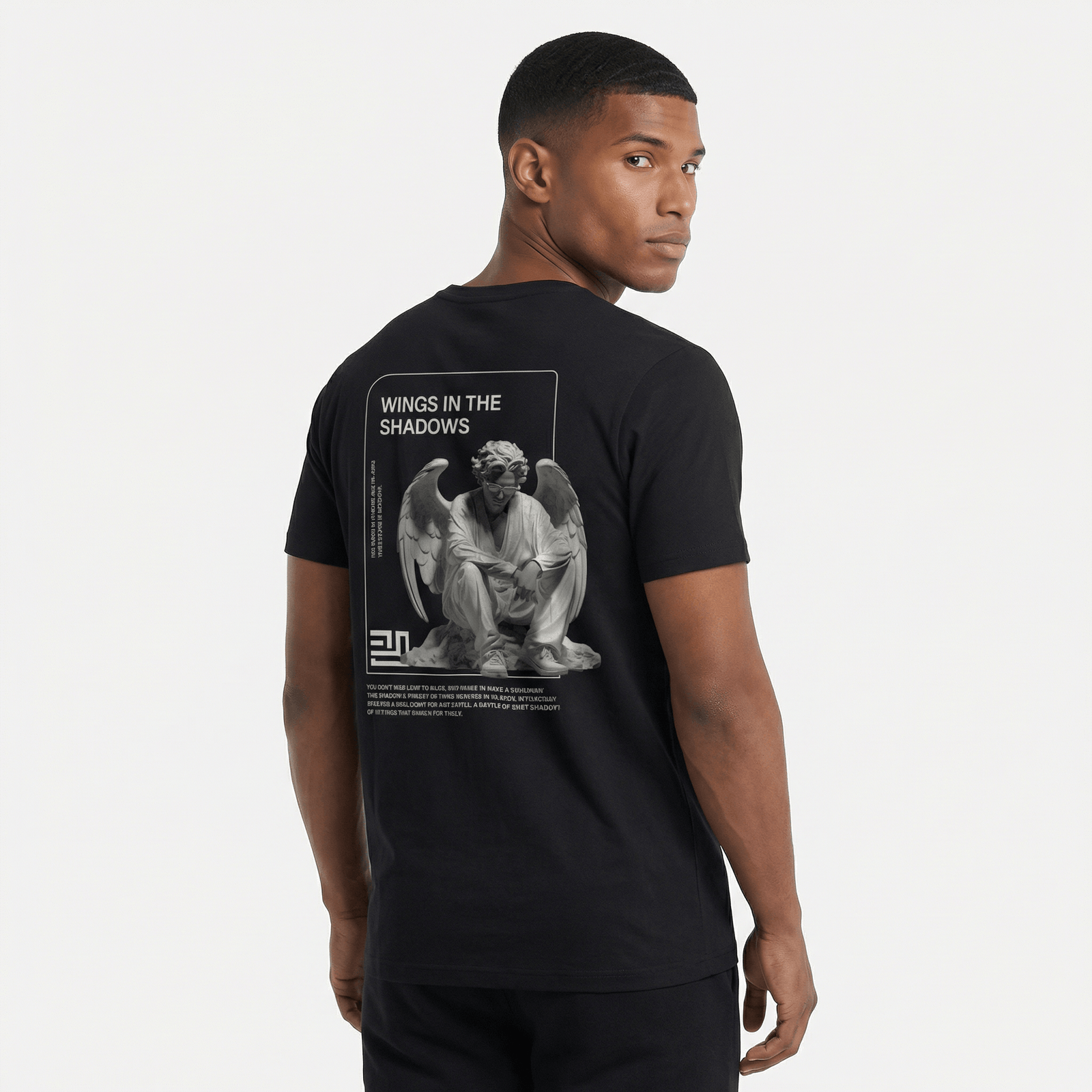 Algunos nacen con suerte. Otros, nos forjamos nuestras propias alas. La camiseta streetwear alas negras ‘Wings In The Negro’ de la Colección P25 no es para los primeros. Es para ti.